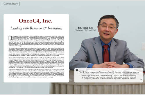 Owing to the innovative approach adopted by Dr. Yang Liu and OncoC4 developing unique drugs that uncouple therapeutic effects and immunotherapy-related adverse effects, Dr. Liu is being featured in the “Top 20 Dynamic CEOs of 2022″ edition. Adam Patrick, Managing Editor of The CEO Publication, says, “Dr. Yang Liu’s love of science and appreciation of others’ talents attract a diverse team of successful business, clinical and regulatory executives, and biopharmaceutical researchers and inspire the team to work together, hence he is being featured as one of the Top 20 Dynamic CEOs of 2022 who is a true inspiration.”